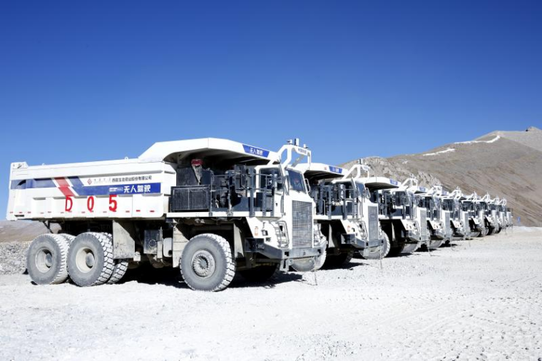 圖為:西藏玉龍銅礦無人駕駛礦車