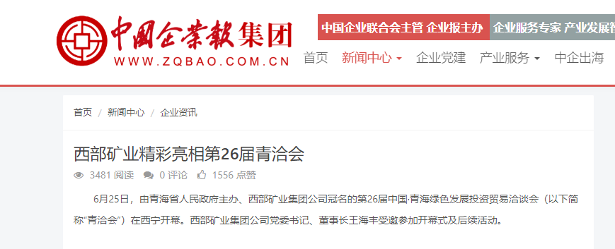 6月25日,由青海省人民政府主辦、西部礦業(yè)集團(tuán)公司冠名的第26屆中國(guó)·青海綠色發(fā)展投資貿(mào)易洽談會(huì)(以下簡(jiǎn)稱“青洽會(huì)”)在西寧開(kāi)幕。西部礦業(yè)集團(tuán)公司黨委書(shū)記、董事長(zhǎng)王海豐受邀參加開(kāi)幕式及后續(xù)活動(dòng)。