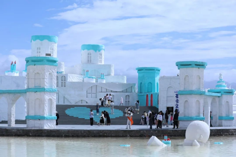 鹽雕廣場(chǎng)氣勢(shì)恢宏的主題鹽雕作品吸引著游客駐足。這些以“成吉思汗”“景頗族”等為主題的雕塑,被世界紀(jì)錄協(xié)會(huì)認(rèn)證為“世界最大戶外鹽雕藝術(shù)群”,總面積達(dá)3萬(wàn)平方米,指尖輕撫過斑駁紋路,仿佛能觸摸到千年歷史的溫度。取之于鹽湖,裝扮于鹽湖,鹽雕在帶給游客最佳觀光體驗(yàn)的同時(shí),將地方特色與生態(tài)理念結(jié)合的巧妙設(shè)計(jì)成為茶卡鹽湖的獨(dú)特景觀。