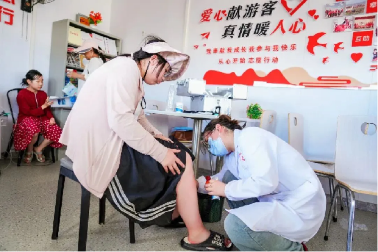 游客在綜合服務(wù)站里接受暖心服務(wù)