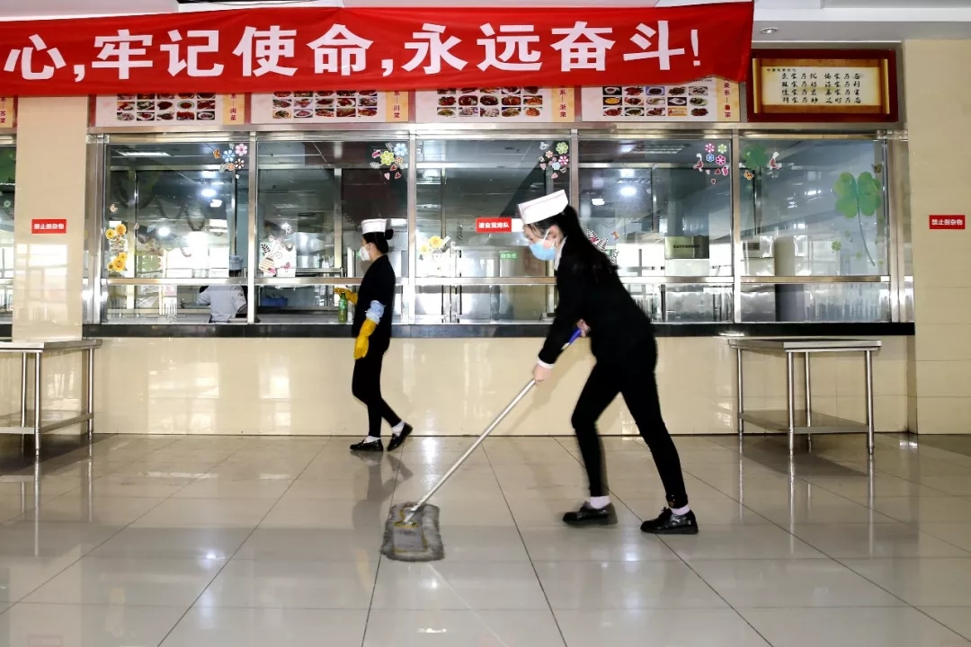 王寵、王海豐在青海銅業(yè)食堂檢查清潔消毒情況