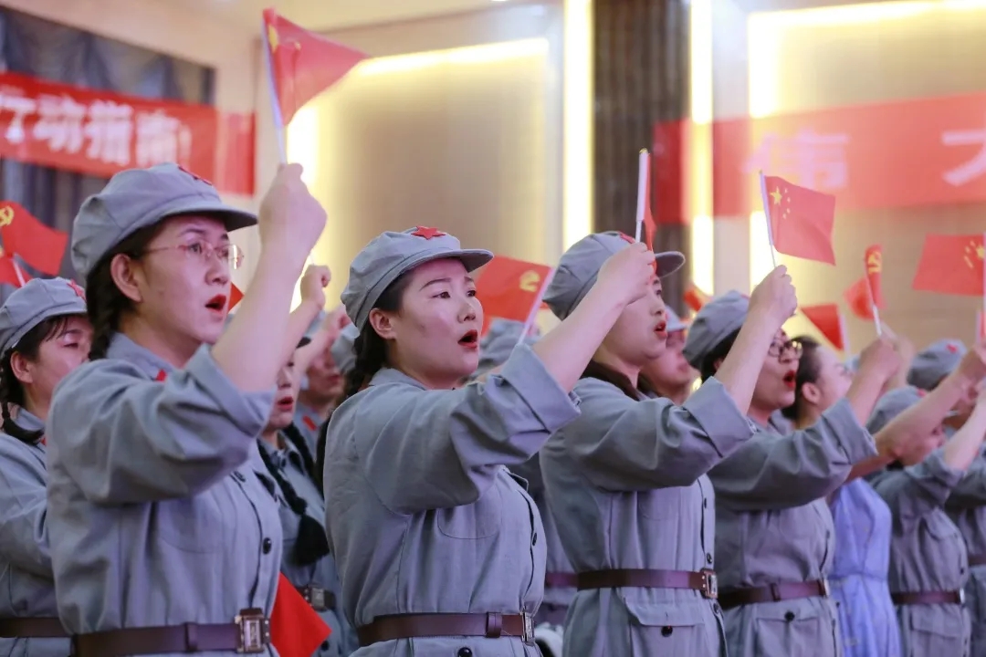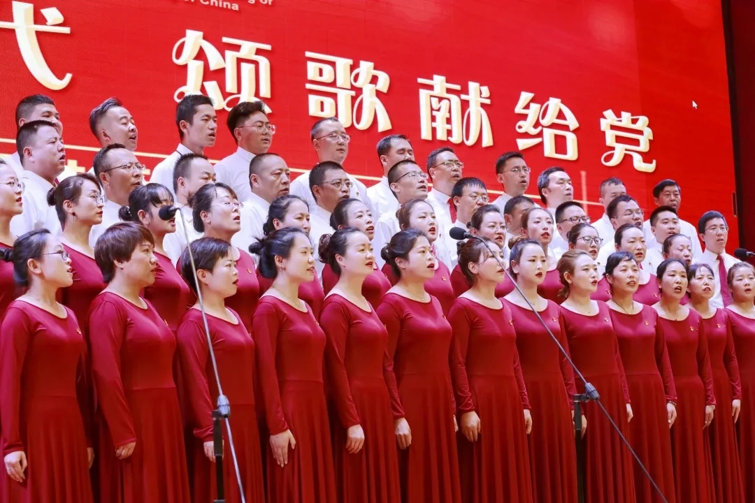 機關黨委演唱大合唱《在燦爛陽光下》,鼓勵公司全體黨員肩負著振興中華民族的使命,勇往直前,不懈奮斗。