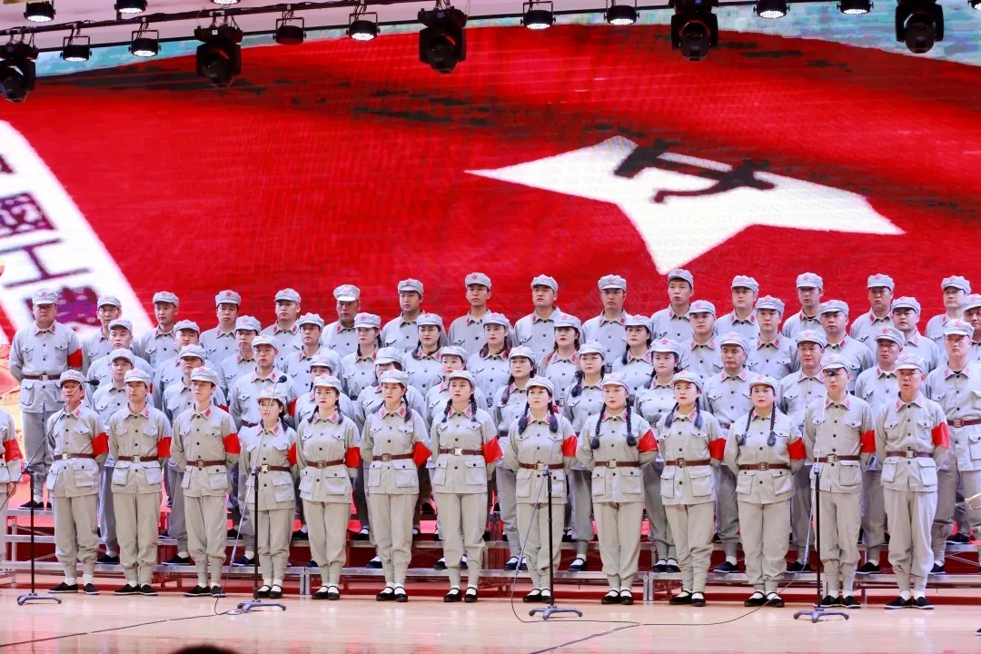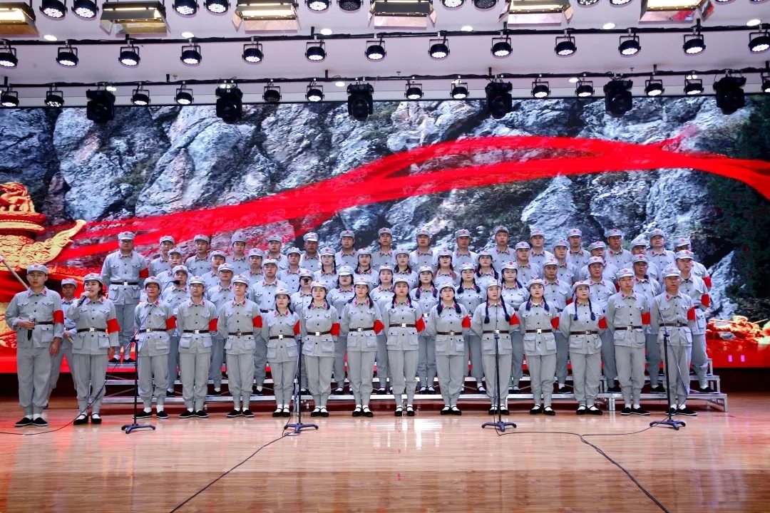 鋅業(yè)分公司、湘和公司表演大合唱《四渡赤水》,讓現(xiàn)場觀眾再次翻開長征這部史書。