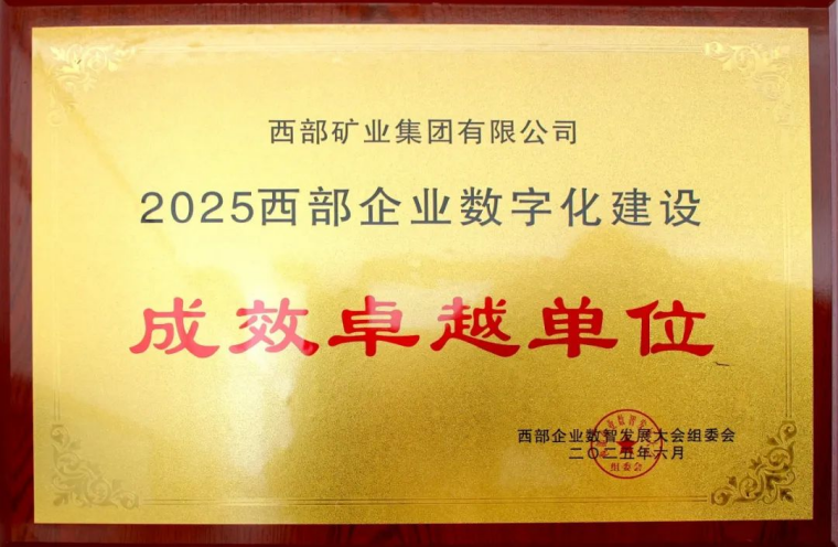 宣傳部訊? 6月20日,“2025西部企業(yè)數(shù)智發(fā)展大會(huì)”在成都召開。西部礦業(yè)集團(tuán)公司獲評(píng)“2025西部企業(yè)數(shù)字化建設(shè)成效卓越單位”,集團(tuán)公司副總工程師祁生月獲評(píng)“2025西部企業(yè)數(shù)字化建設(shè)領(lǐng)軍人物”。