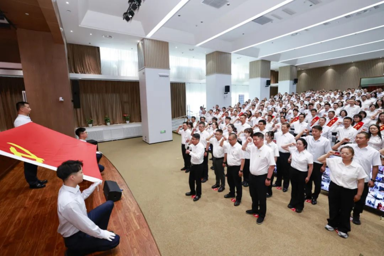 大會在莊嚴(yán)的國歌聲中拉開序幕。入黨誓詞,是信仰的承諾,是行動的方向,是共產(chǎn)黨人精神的根脈。王海豐帶領(lǐng)新發(fā)展黨員入黨宣誓,老黨員重溫入黨誓詞,誓言鏗鏘有力,是一場初心的洗禮,表達了對黨的無限忠誠和對共產(chǎn)主義的堅定信念。會議表彰5個先進基層黨組織、30名優(yōu)秀共產(chǎn)黨員、10名優(yōu)秀黨務(wù)工作者,獲得表彰的基層黨組織、優(yōu)秀共產(chǎn)黨員、優(yōu)秀黨務(wù)工作者三名代表作交流發(fā)言。
