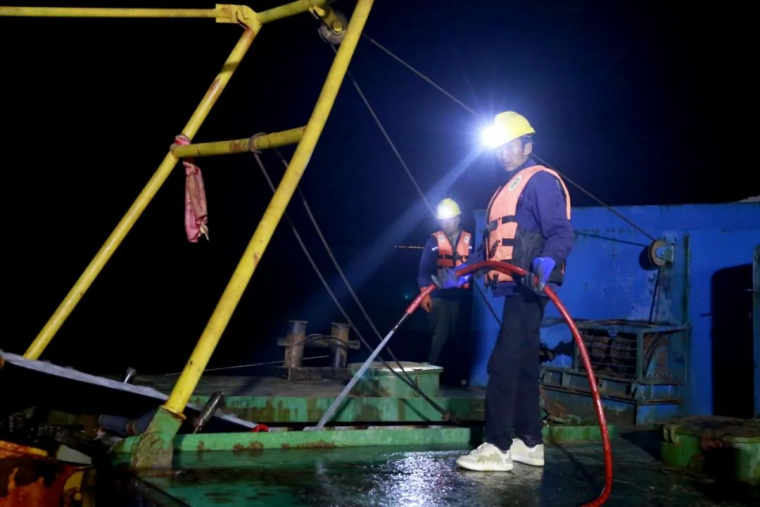 當瀚海的夜色把滿天星河鋪灑在鹽湖之上,勤勞的西礦人向鹽湖深處出征,滿載而歸。正值旅游旺季,為讓出航道滿足景區(qū)游客乘船游玩的需求,給游客提供更全面服務(wù)和最佳游玩體驗,青海鹽業(yè)及時調(diào)整工作時間,一線職工白天支援景區(qū)服務(wù)工作,夜晚在迢迢星漢下挺起“吃鹽飯”的脊梁,在雙刀輪采鹽船上實干爭先。