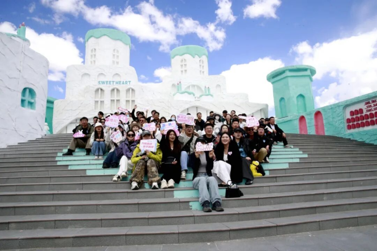 滿載浪漫青春氣息的大巴行駛在廣袤的草原上,俊男靚女們的思緒隨著主持人精彩的講解飄向了此行的目的地——茶卡鹽湖?!拔覀兘裉鞂⒃谝詯?ài)情為主題的‘茶卡奇緣’鹽雕主題區(qū)域開(kāi)展游戲互動(dòng),游覽區(qū)與瑤池仙境、鹽馬古道等共同組成‘世界最大的戶外鹽雕藝術(shù)群’,并以鹽白、湖藍(lán)、粉紅色彩為搭配,展現(xiàn)不同的浪漫場(chǎng)景,白天是彩色藝術(shù)殿堂,夜晚變身光影魔幻世界,是拍照打卡的寶藏地?!敝鞒秩藙?dòng)情介紹,青年們期待滿滿。