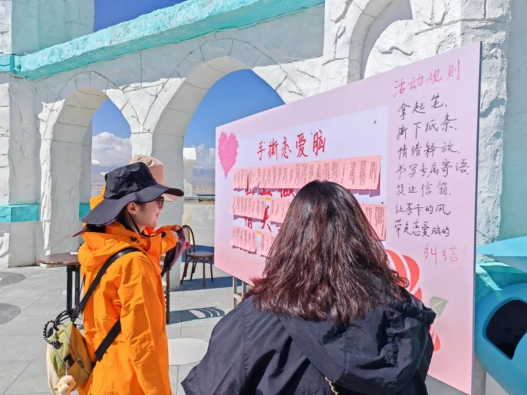 活動(dòng)還精心準(zhǔn)備了玫瑰花和告白環(huán)節(jié),在藍(lán)天白云見(jiàn)證下,一個(gè)個(gè)熱情奔放的男青年將玫瑰花獻(xiàn)給心儀的她,在“中國(guó)的天空之鏡”許下“相識(shí)到相知,相知到相愛(ài),相愛(ài)到相守,相守到白頭,相互攙扶,共度此生”的浪漫誓言。