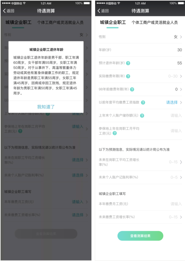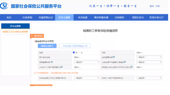 人社部于2019年底通過(guò)國(guó)家社會(huì)保險(xiǎn)公共服務(wù)平臺(tái)開(kāi)通了養(yǎng)老金測(cè)算服務(wù),目前支持的是城鎮(zhèn)企業(yè)職工、個(gè)體工商戶或靈活就業(yè)人員的養(yǎng)老金測(cè)算。